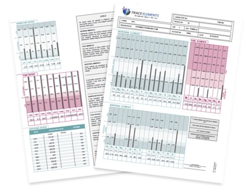 An individualized evaluation and discussion of mineral patterns and their impact on chemistry are written out in the computer generated report by Trace Elements lab. Metabolic type, endocrine and performance indexes are discussed. Also, any important nutritional minerals, essential to overall health, are highlighted if there is any moderate or significant deviation from normal. Dietary supplement recommendations (by Trace Elements, Inc.) are given based solely upon hair mineral patterns determined.