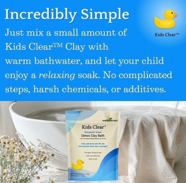 Kids Clear™ Detox Clay Bath is a 100% pure bentonite clay that has a very high cation exchange capacity (CEC) of 98-107 meq/100g. It contains no added fillers or excipients.